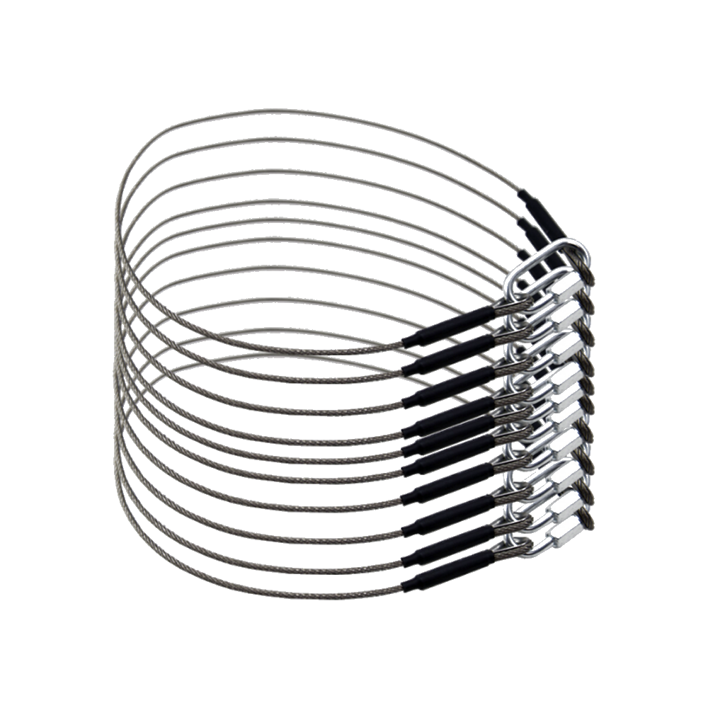The AVE SW200PK10 is a 10 pack of the 2mm thick steel safety cables, an important ‘fail safe’ for your overhead fixtures and effects. The cable is 400mm long and is capable of supporting up to 20kg, this safety wire is perfect for a wire range of lights and effects. Easy to use with a loop and chain link design. A must have for venues, production companies, and mobile entertainers.