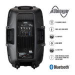 The AH115-G2 is a powerful and flexible 2-way active speaker system with an integrated mixer and Digital Media Player, capable of taking an SD card or a USB memory stick and is fitted with Bluetooth to allow audio streaming from any Bluetooth equipped audio device: Stream your music straight from your phone! The high-impact resistant polymer construction and logical control layout means that it is easy to use and portable. The AH115-G2 combines flexibility with performance making it ideal for a wide variety of sound reinforcement applications such as conferences, classrooms, parties, musical performance, worship, presentations, seminars, sports, aerobics, DJ’s, bars and more. Whatever you need the AH115-G2 has got it covered. It is recommended for crowds of up to 200.