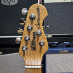 This 1991 Music Man Ernie Ball Silhouette is a beautifully crafted electric guitar with a natural wood grain finish. Despite some minor marks and scratches, it remains in excellent condition with no significant damage. All components function flawlessly.