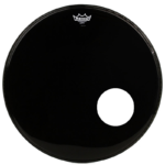 The Powerstroke® P3 Ebony® 5 Inch port, features midrange and low end resonant tones with a pre-cut 5″ hole. Constructed with 1-ply 10-mil Ebony® film with a 10-mil inlay ring, the Powerstroke® P3 Ebony® drumhead provides a perfect balance of mid and low tones that has made Powerstroke® Ebony® of Remo’s most popular resonant Bass drumheads.