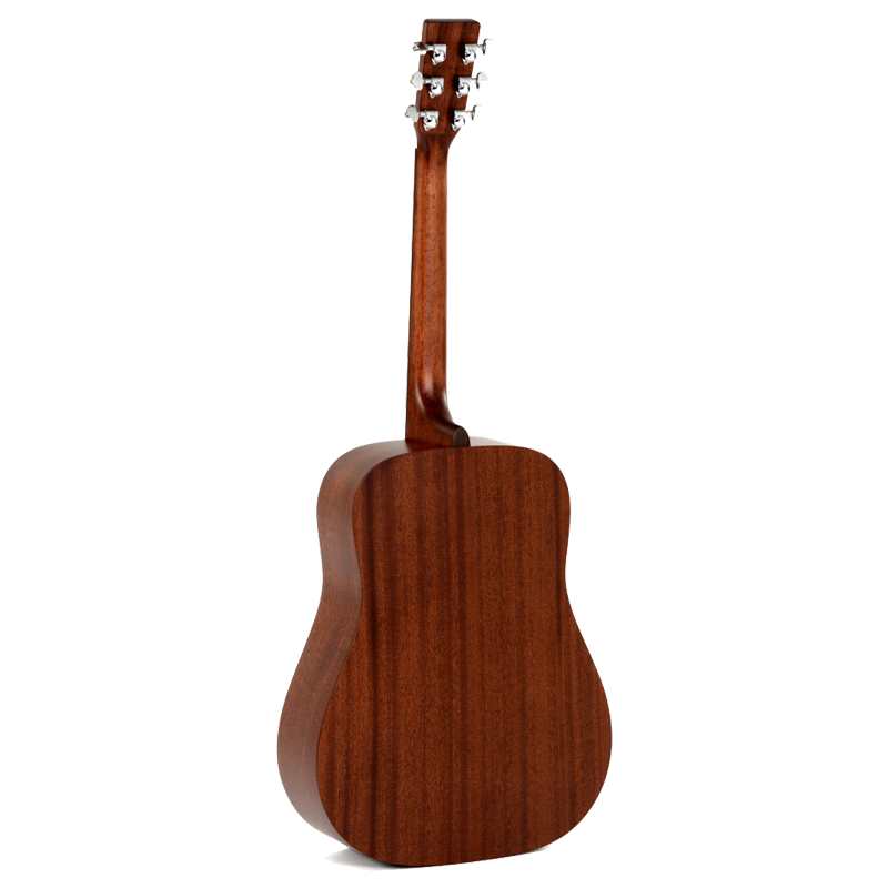 Sigma DM-15 Acoustic Guitar The Sigma DM-15 is a steel-stringed acoustic guitar whose design is oriented towards the well-known guitars of traditional american manufacturers. Therefore, the body of the Sigma DM-15 is quite close to a D-14 guitar and consists in this model completely of mahogany, with a solid mahogany top. The mahogany neck of the Sigma DM-15 features a fingerboard made of Micarta with 20 perfectly fitted frets. The great playability and the direct steel-string sound with its straight decaying notes and fast attack makes the Sigma DM-15 to an charismatic acoustic guitar of great value.