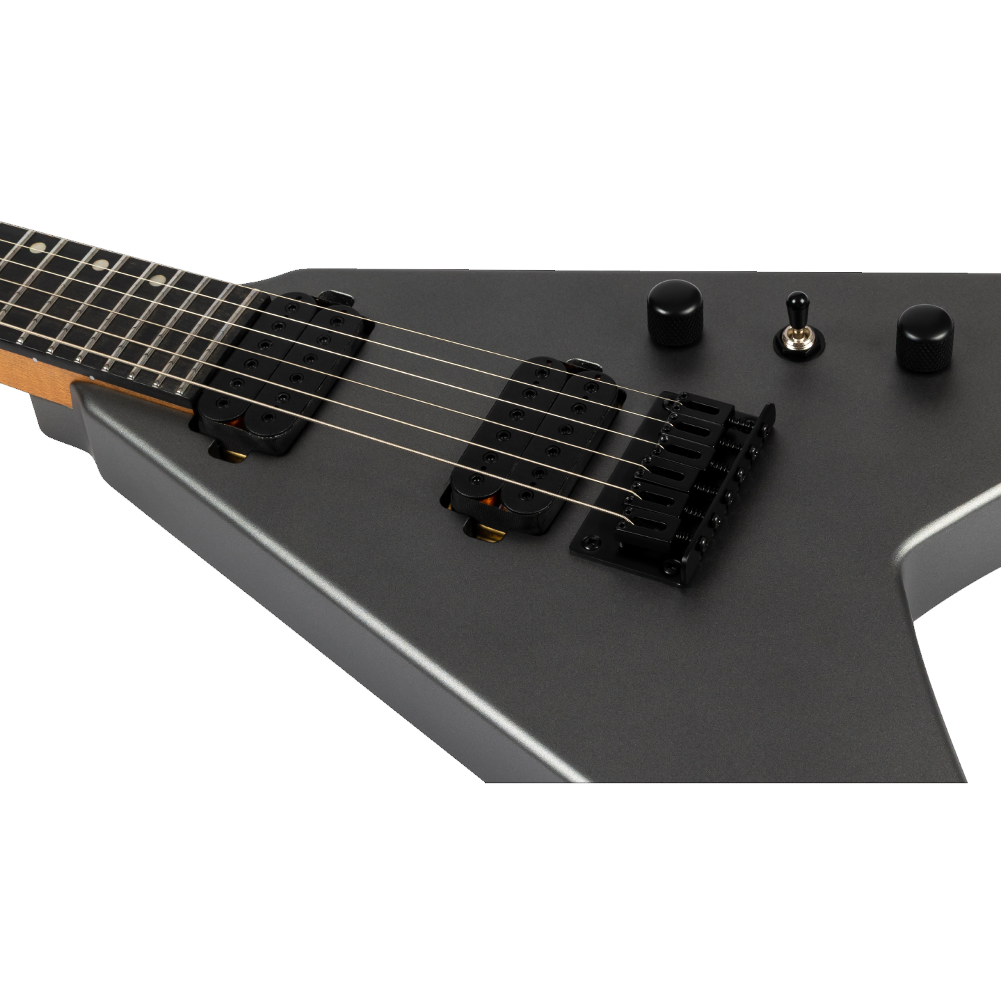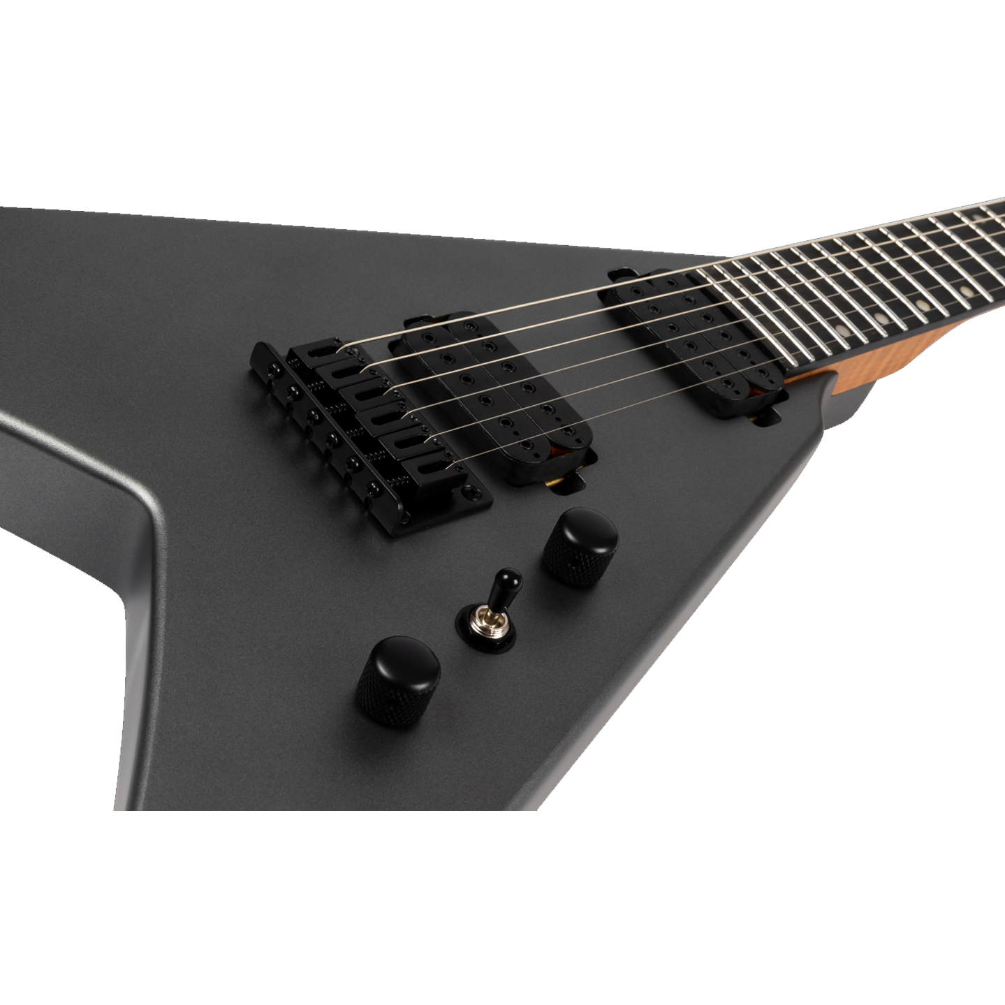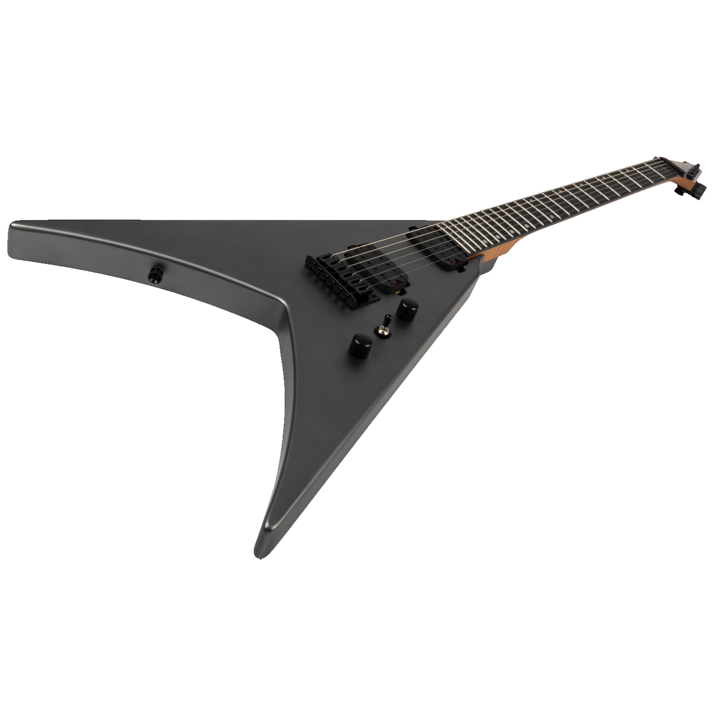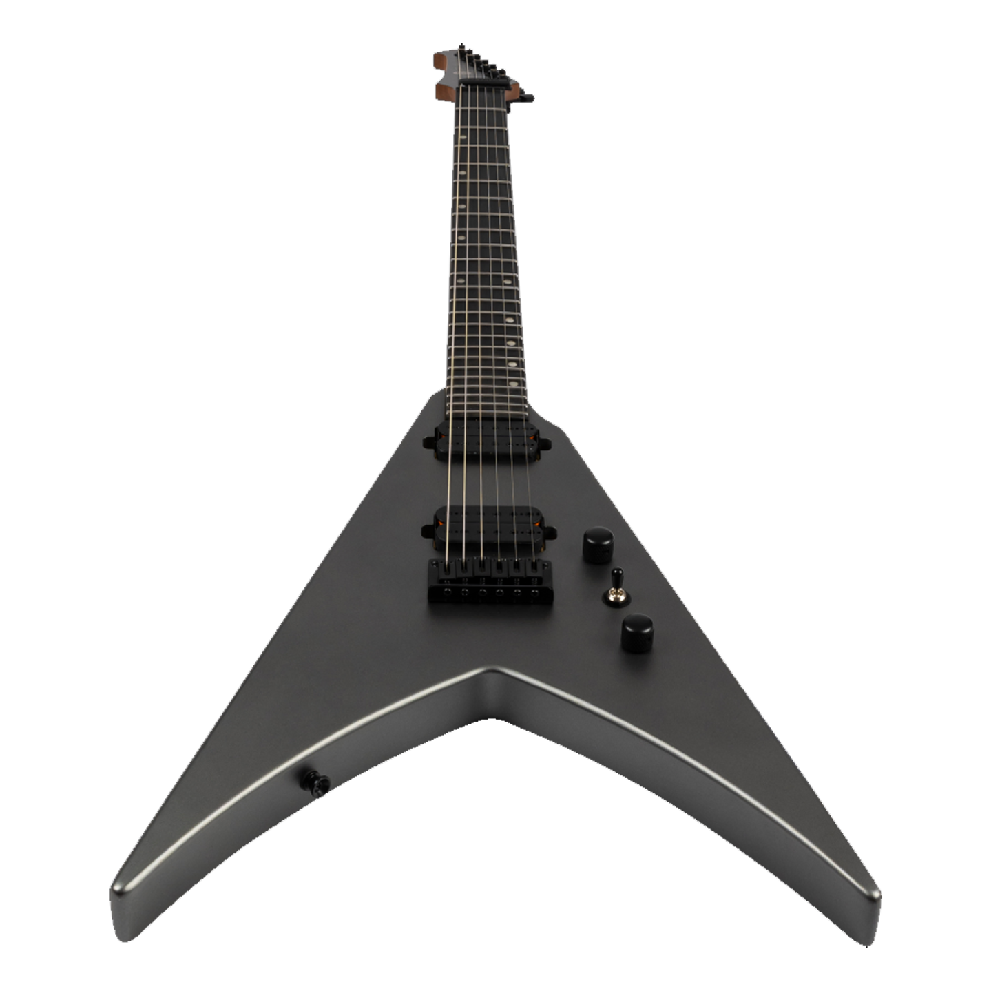 The Spira Guitars V-400 is a bold, modern reimagining of the classic V-shape, designed for speed, power, and precision. Its roasted poplar body and satin-finished Canadian roasted maple neck offer a comfortable yet rugged feel, while the Ebony Tech fretboard with 24 jumbo frets ensures fast, articulate playing. Featuring Spira’s custom high-output Villain humbuckers with ceramic magnets, the V-400 delivers punchy, aggressive tones ideal for high-gain riffing and cutting solos. A fixed bridge and locking tuners provide rock-solid tuning stability, making it equally reliable on stage or in the studio. Finished in sleek satin black hardware, it’s a visually and sonically uncompromising instrument.