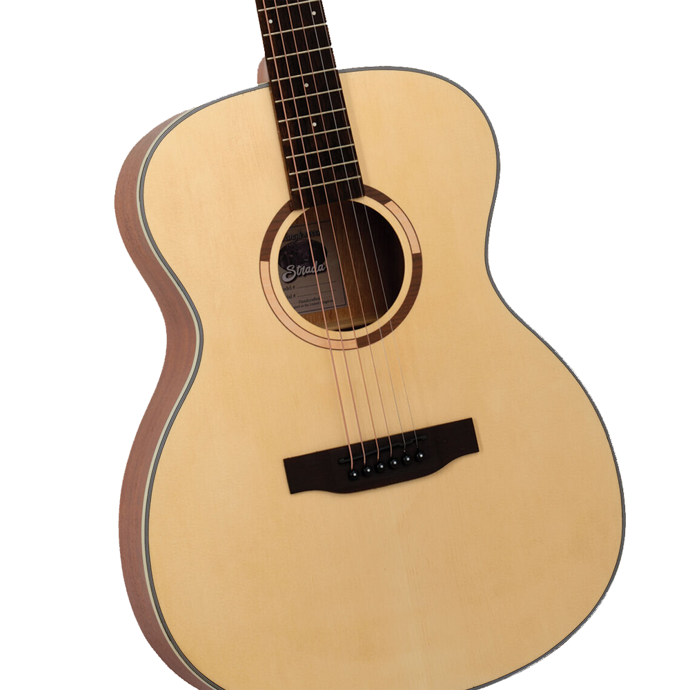 The Strada series guitars are a testament to this hard work boasting a superior sound quality, not usually found in entry level guitars. Each model boasts a top made from Spruce, renowned for its exceptional tonal clarity and dynamic response. The back and sides of all Strada models are constructed from Mahogany, which imparts a balanced and warm tonal character, enhancing the overall richness of the sound.