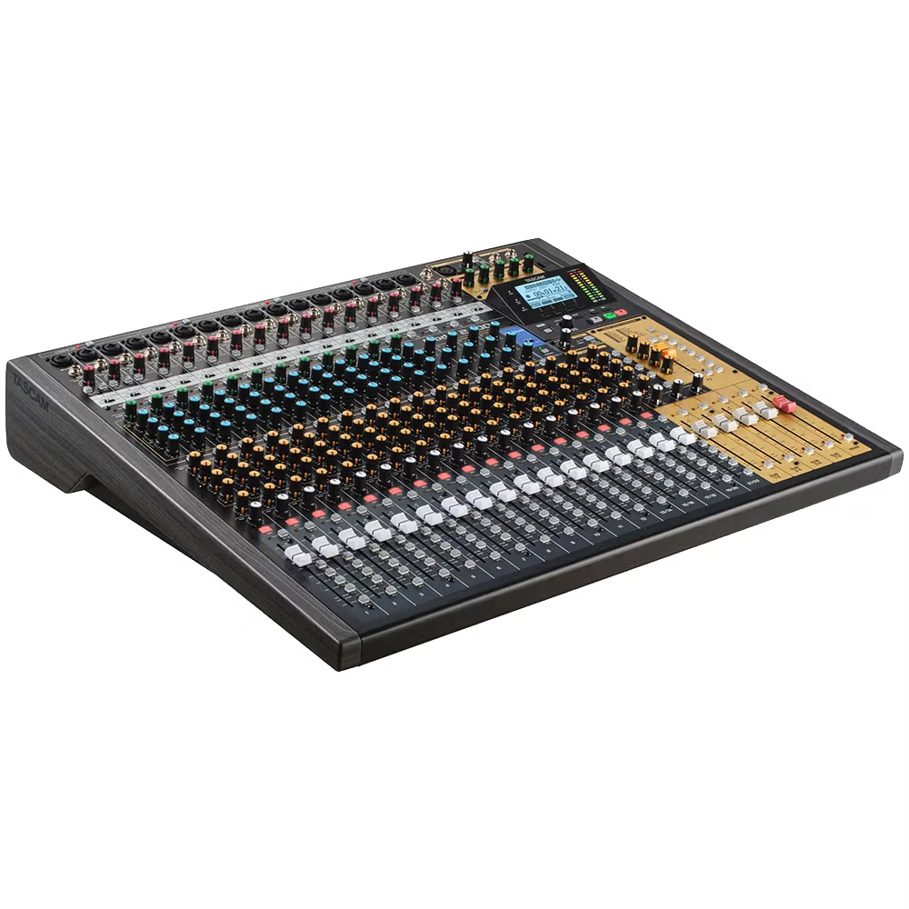 - 22 analog input channel modules with 16 XLR Mic Pre-amps, utilizing TASCAM ultra HDDA Mic Pre-amp technologies and a one knob compressor (Ch 1-12)