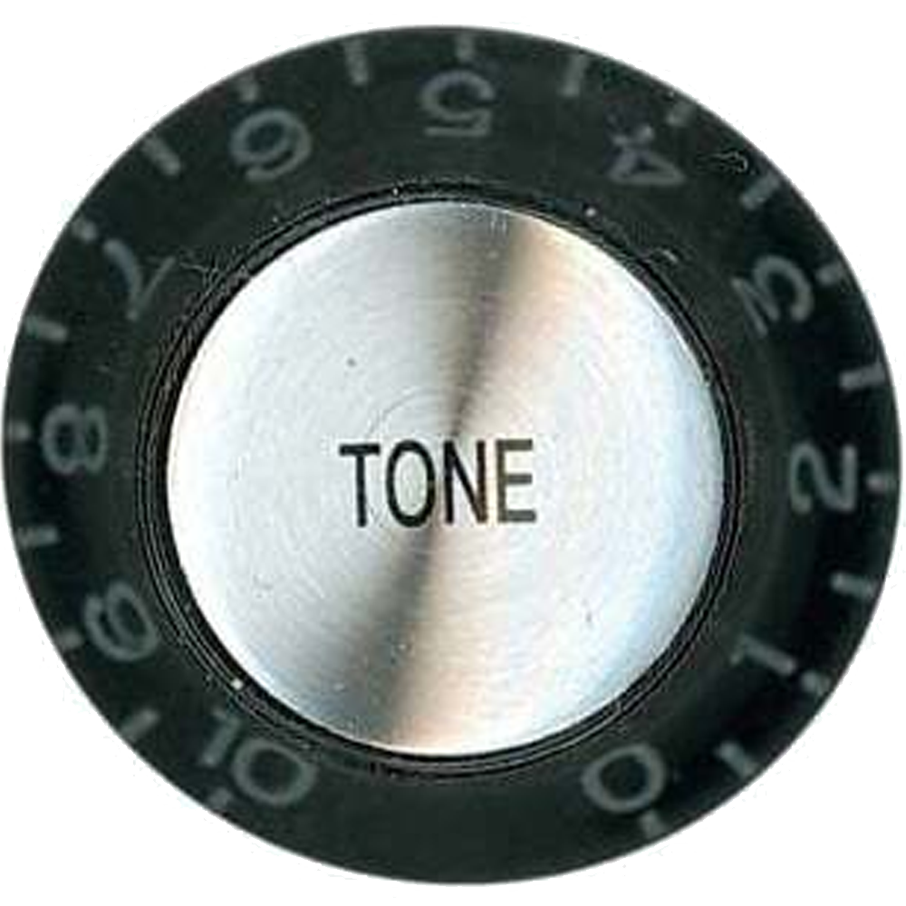 Tone Knob. Vintage hat style. Black with silver numbers and top.