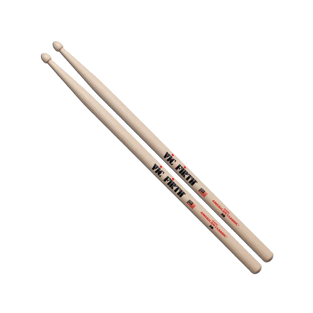 The American Classic line combines tradition and Vic Firth style. With bold designs, the Classics are turned from select hickory — a dense wood with little flex for a more pronounced sound. Hickory is also capable of withstanding a great deal of shock, making it highly durable. The tips are deeply back-cut for intensified cymbal response.