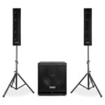 The Vonyx VX880BT set is easy to set up and easy to transport. This set includes a 15″ subwoofer and two 8″ wooden column speakers. Both column speakers are equipped with 4x 4.5″ speaker and 1x 1″ tweeter’. The built-in BT receiver allows you to simply stream your music wirelessly from your smartphone or you can use the built-in MP3 player with USB and SD slots.